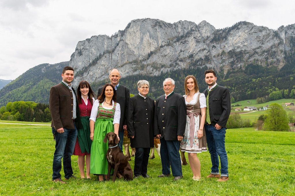 Unser Biohof, dessen Wurzeln bis ins Jahr 1813 zurückreichen, wird von Johann und Angelika Strobl bewirtschaftet. Auf dem Hof in St. Lorenz am Mondsee leben zudem ihre Söhne Simon mit seiner Ehefrau Elena sowie Johannes jun. mit seiner Partnerin Melanie und ihrer gemeinsamen Tochter Valentina. Auch die Altbäuerin Julie Strobl ist fester Bestandteil des Familienbetriebs.